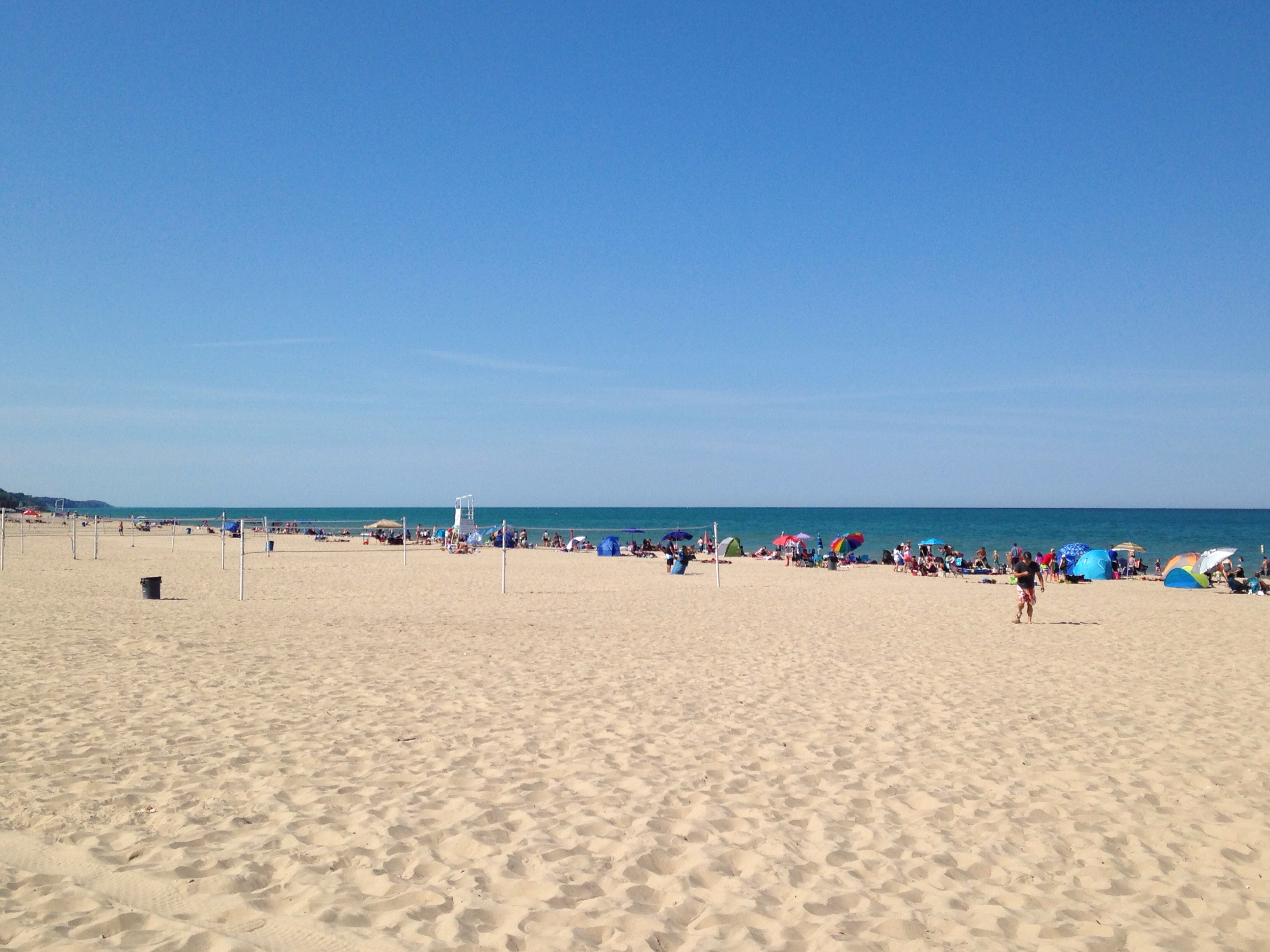 Esta praia de águas calmas e tépidas do lago Michigan fica a hora e meia de caminho, o que não é muito se pensarmos o tempo que demora atravessar a 25 de Abril para ir para a Caparica em Agosto!